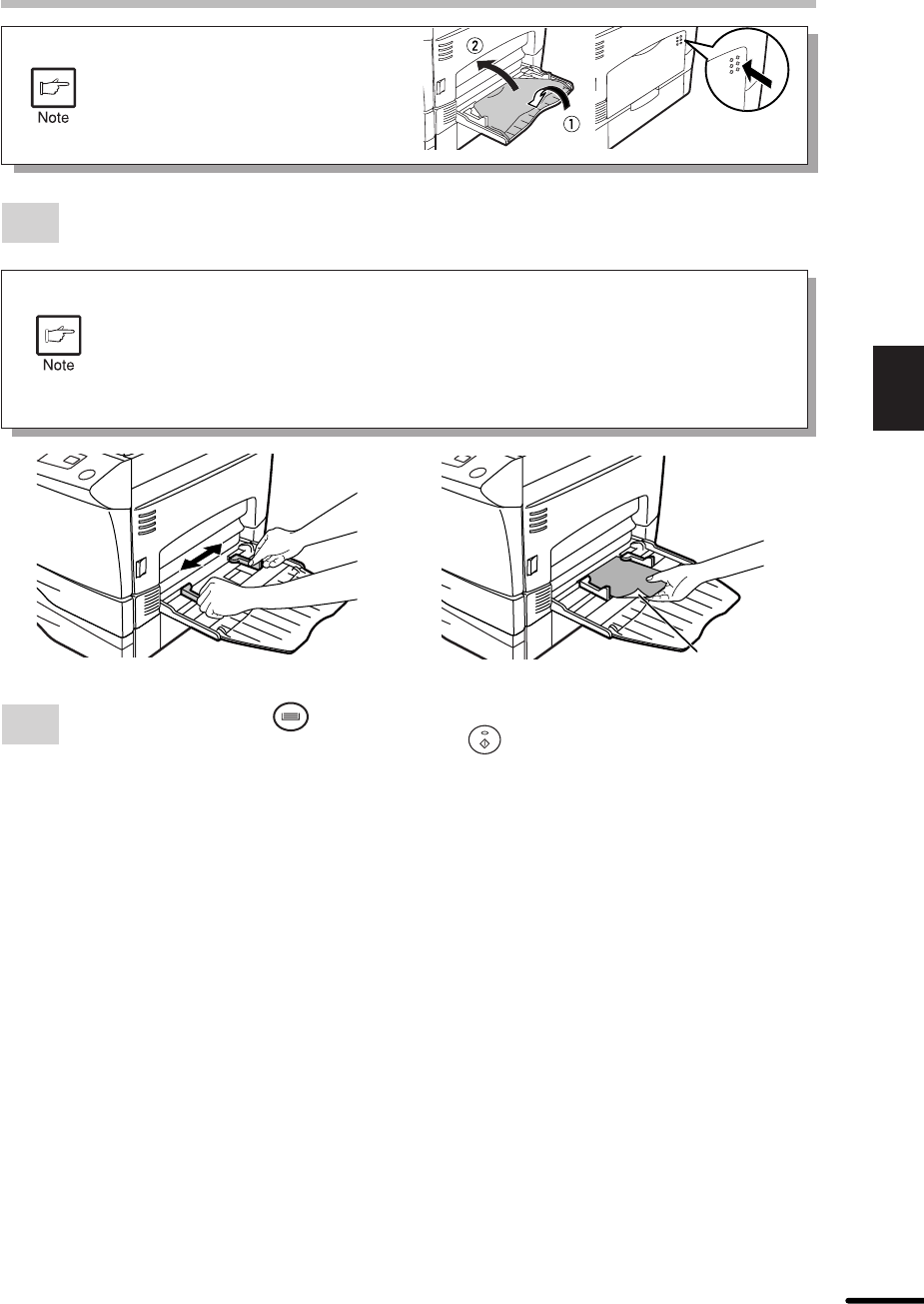 Press the tray select ( ) key to select the bypass tray. Set the number of copies if