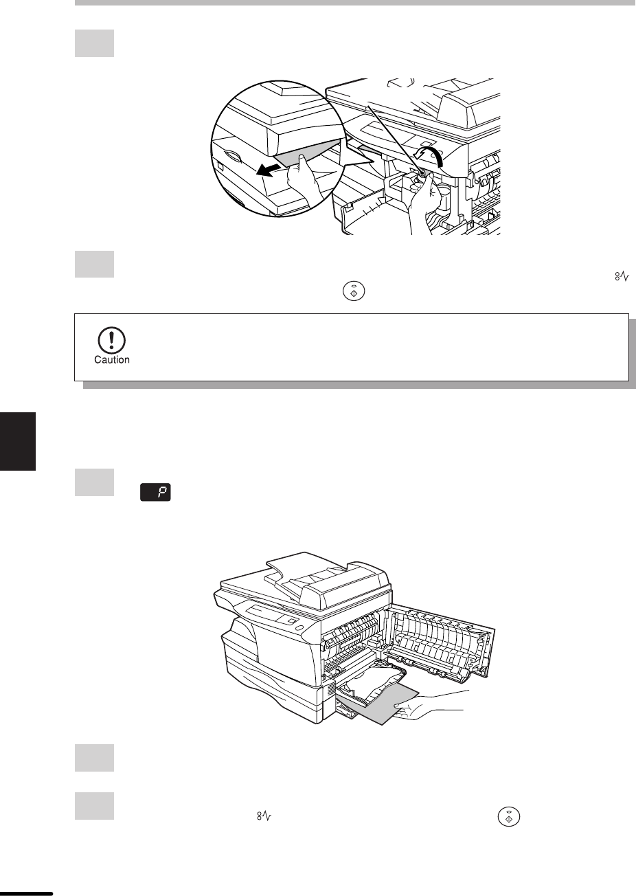 button. The misfeed ( ) indicator will go out and the ready ( ) indicator will light