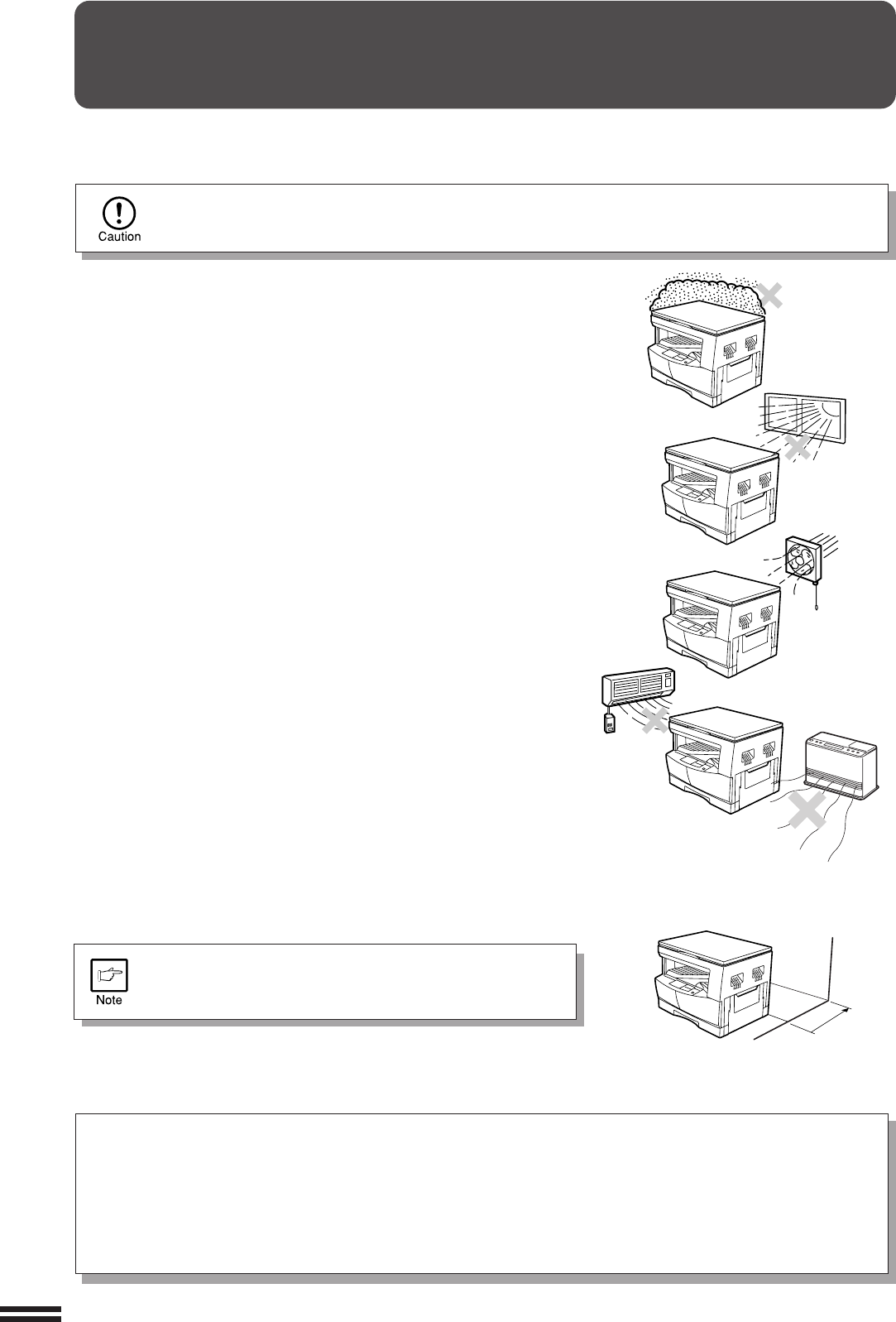 Improper installation may damage the copier. Please note the following