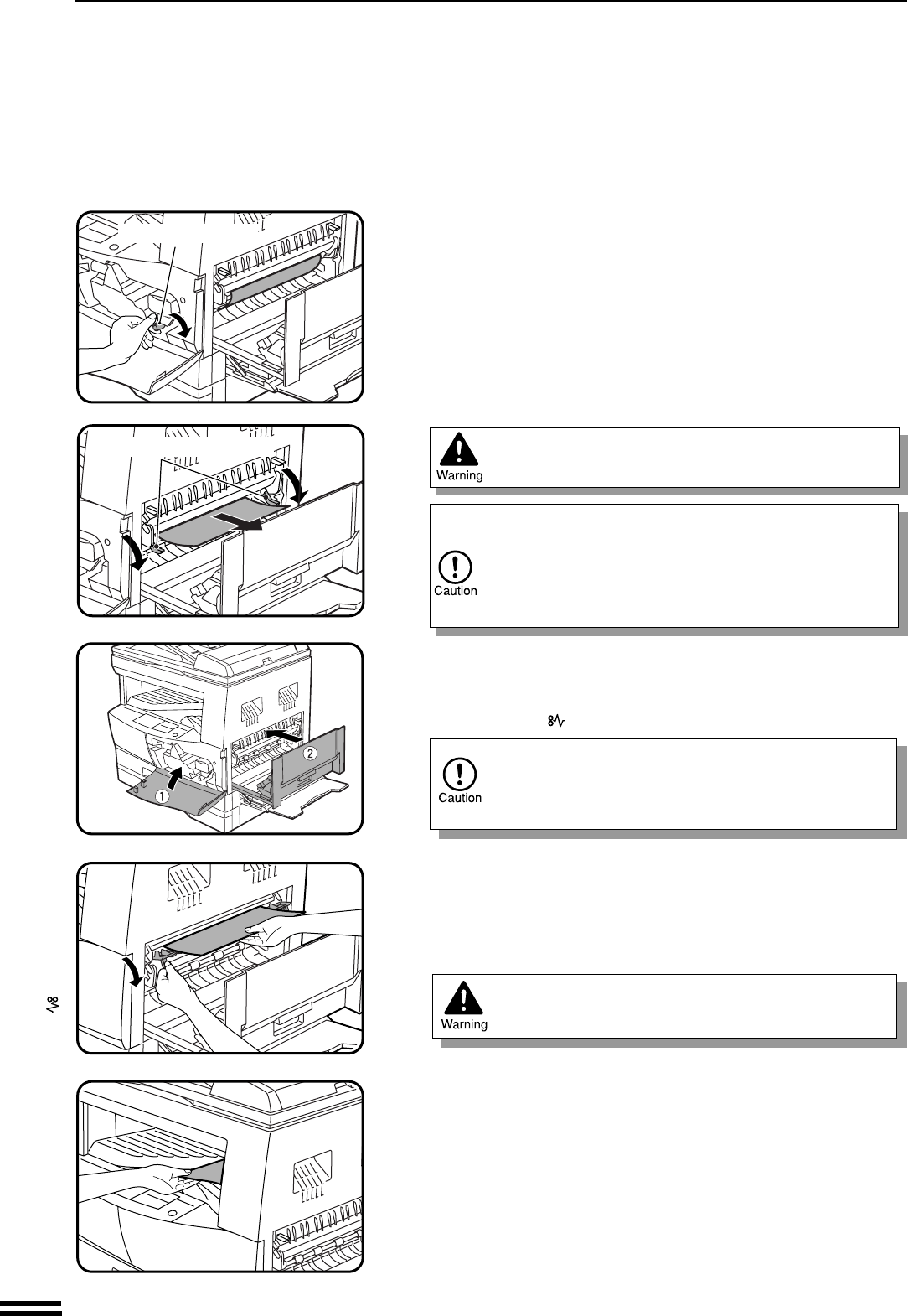 The fusing unit is hot. Take care in removing paper.