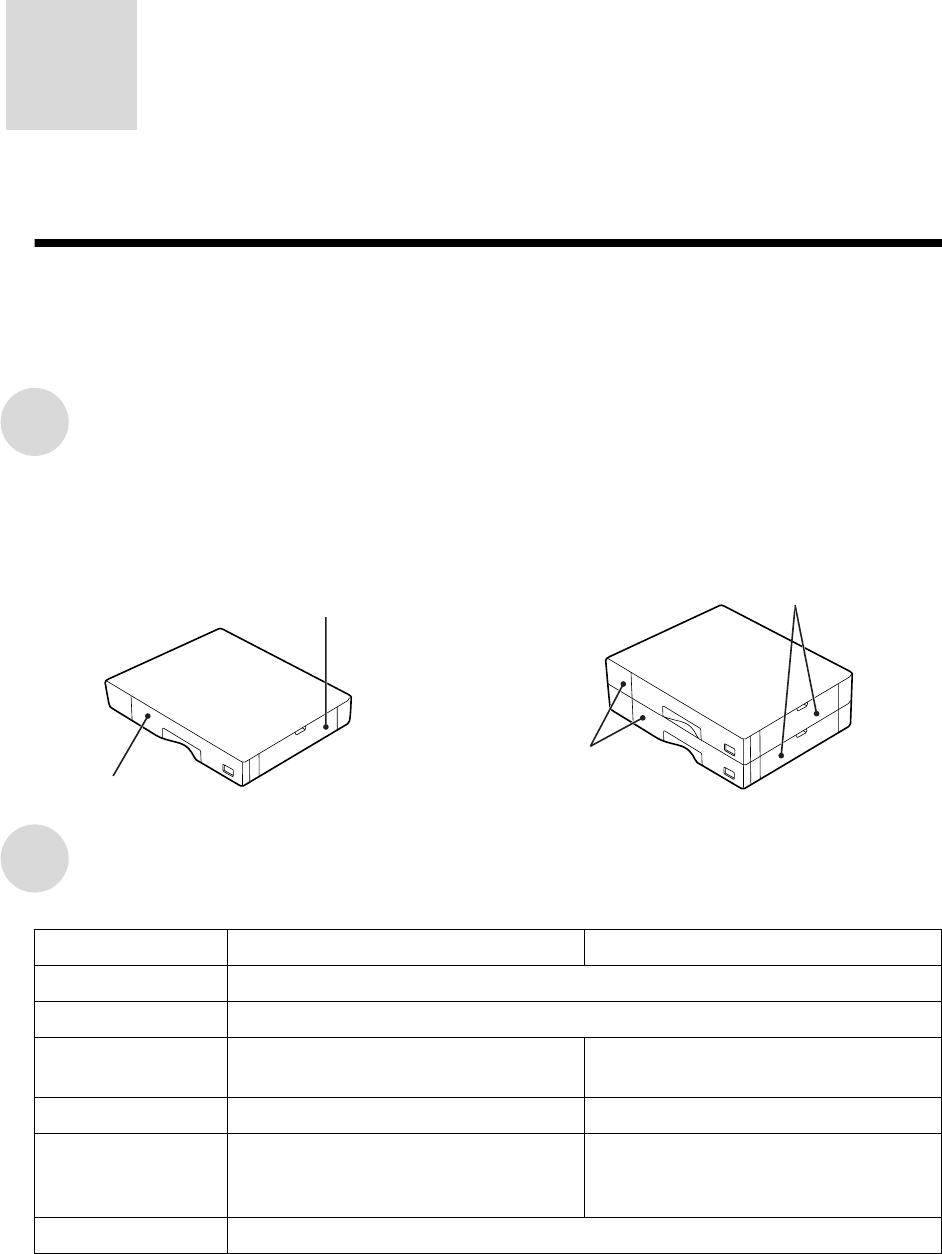 The AR-D11 contains one 500-sheet paper tray and the AR-D12 contains two 500-sheet paper trays.