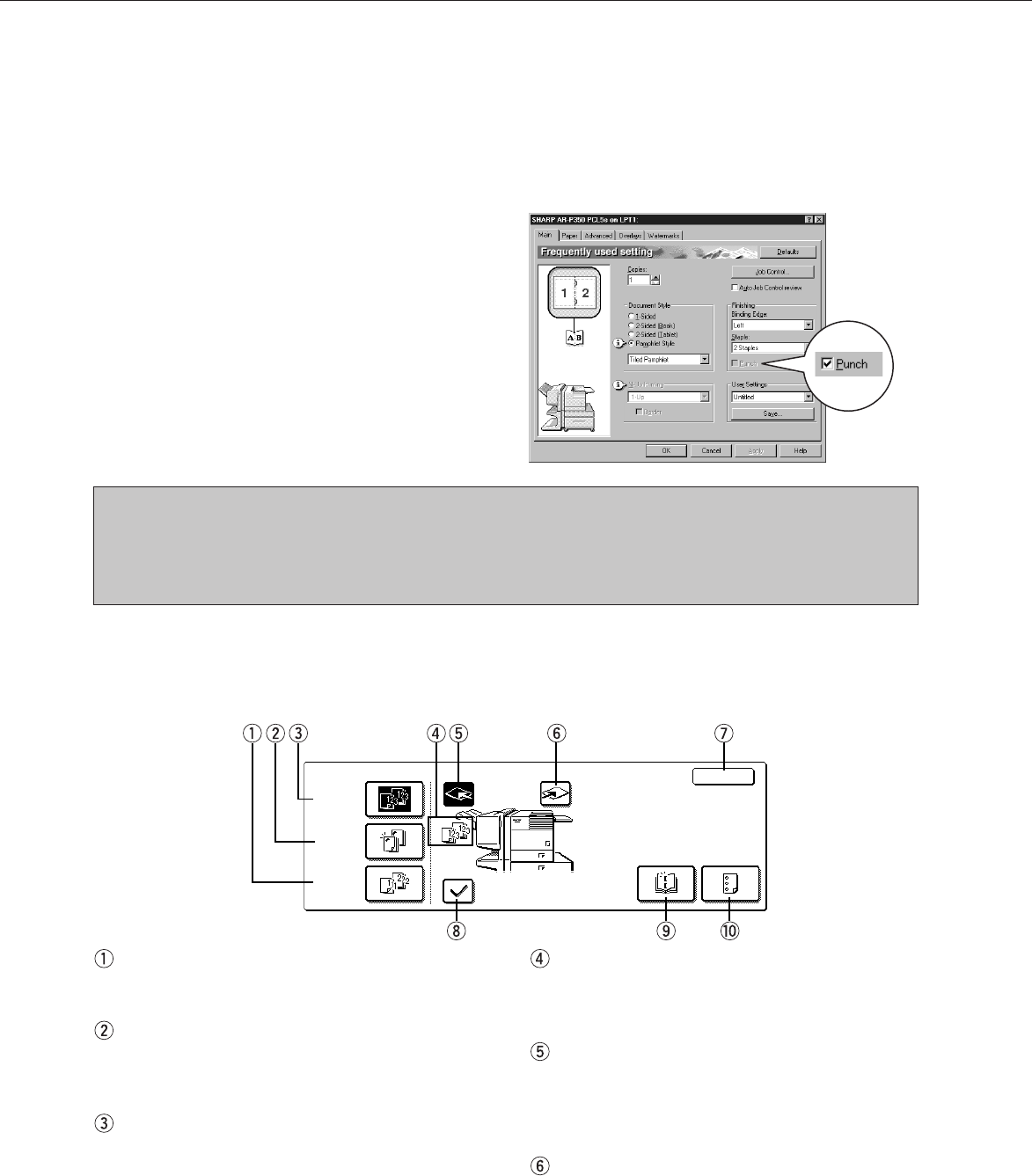 ● For the settings above, installation of peripheral units must have been set properly in the properties of the printer driver (see