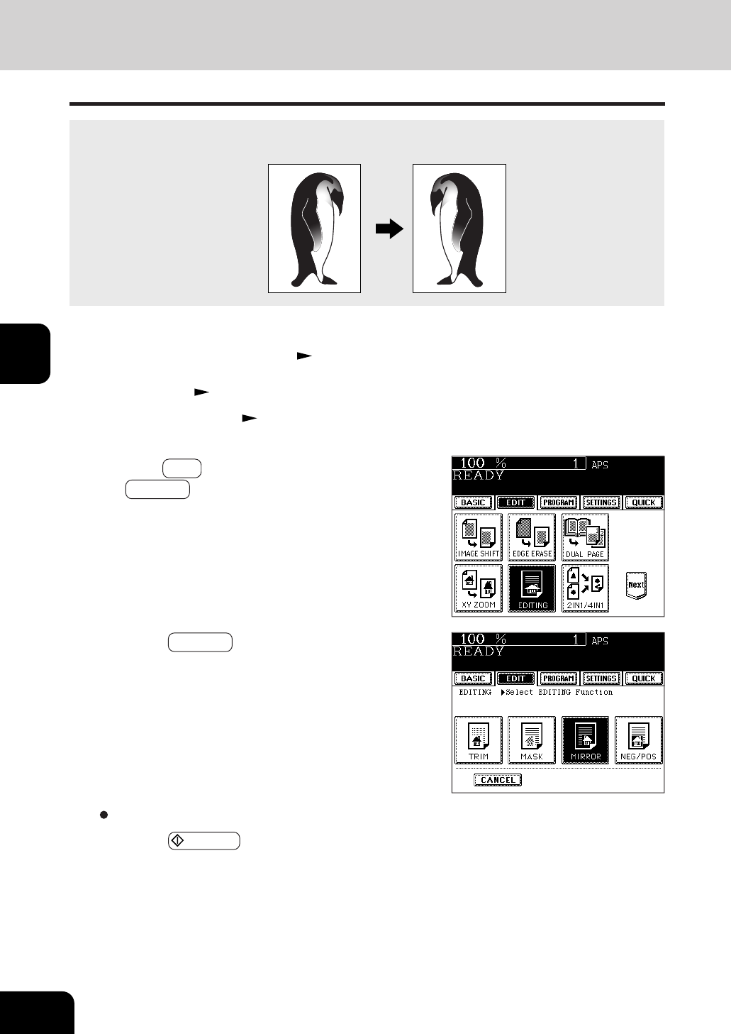 Press the MIRROR key.
