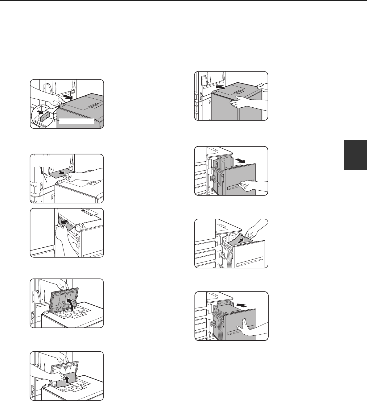 When a misfeed occurs in the large capacity tray, remove the misfed paper, following the procedure below.