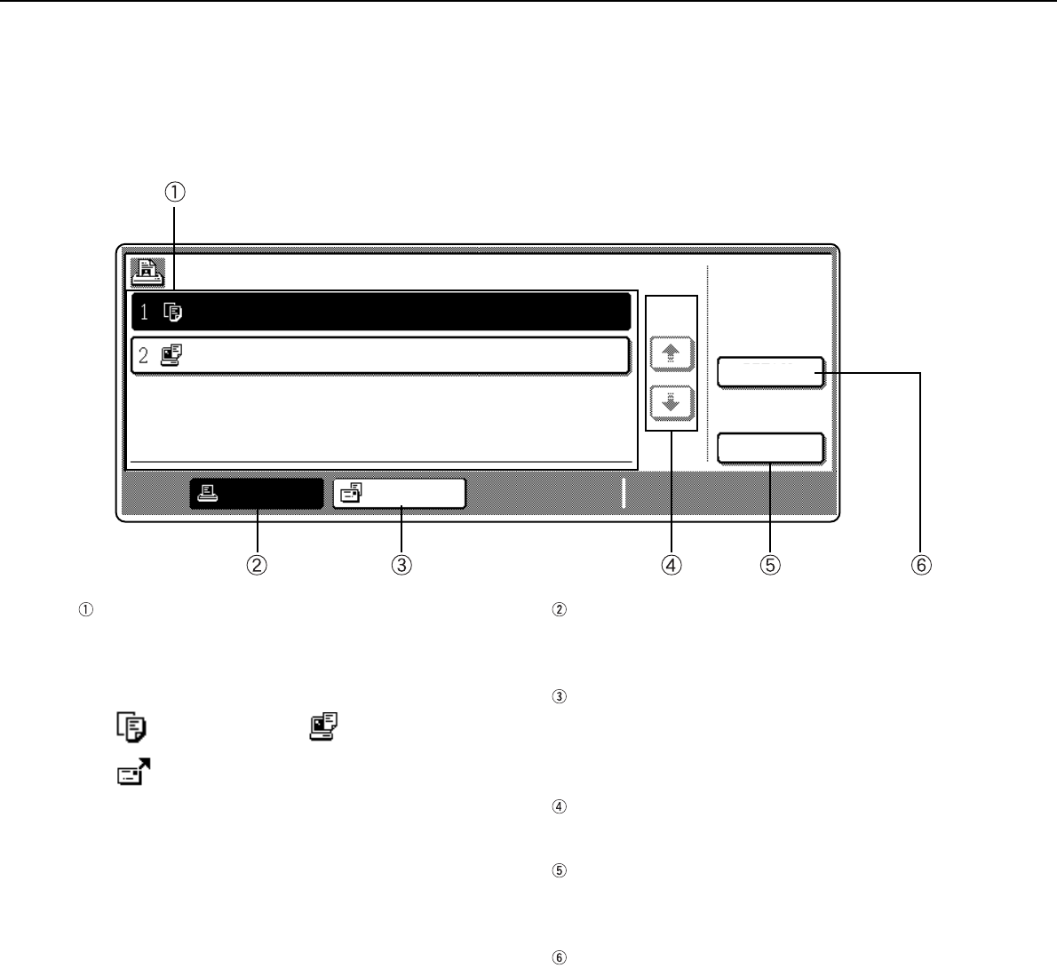 Use to display the print job list for print and copy