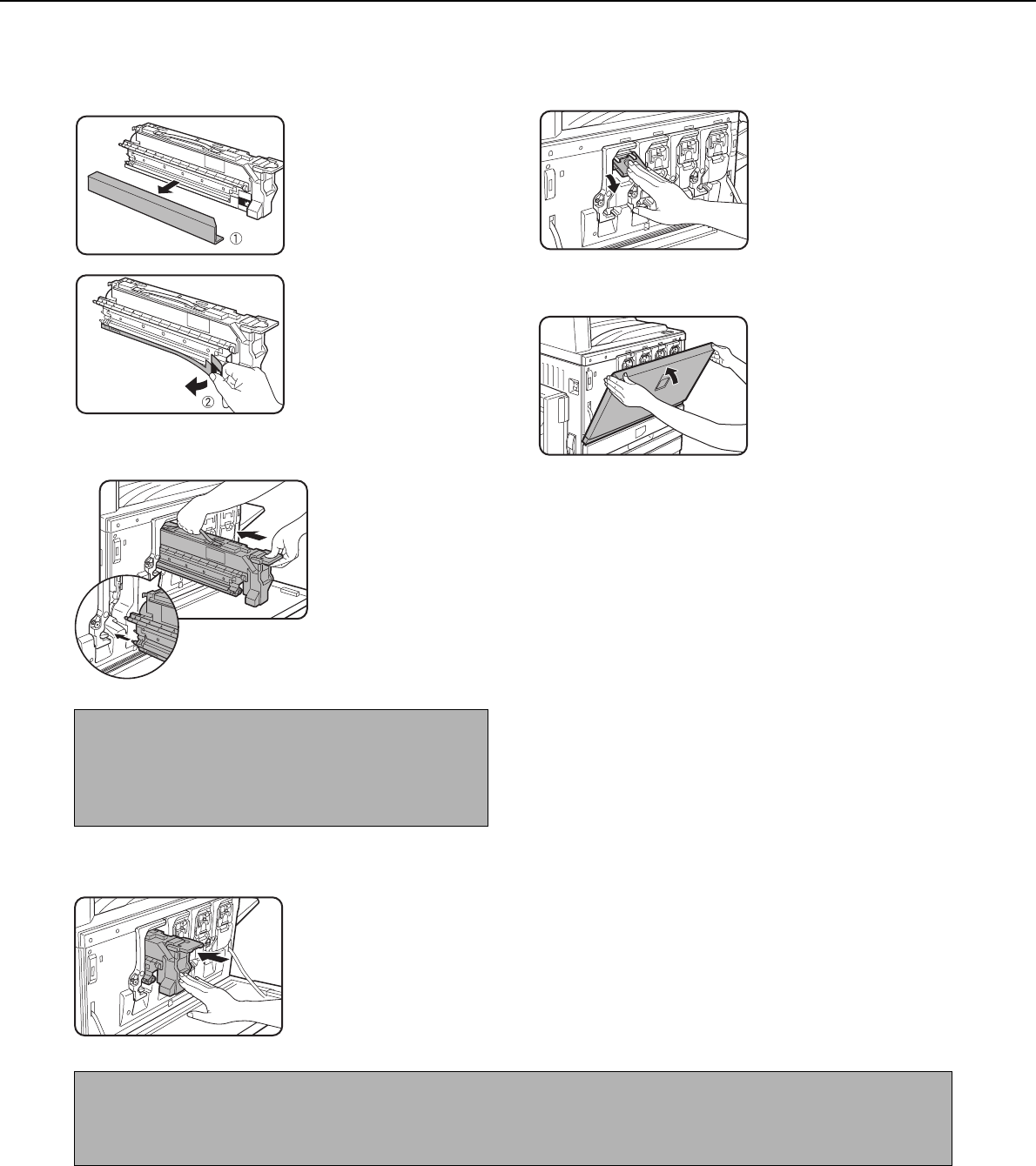● Do not throw the toner cartridge into a fire. Toner may fly and cause burns.