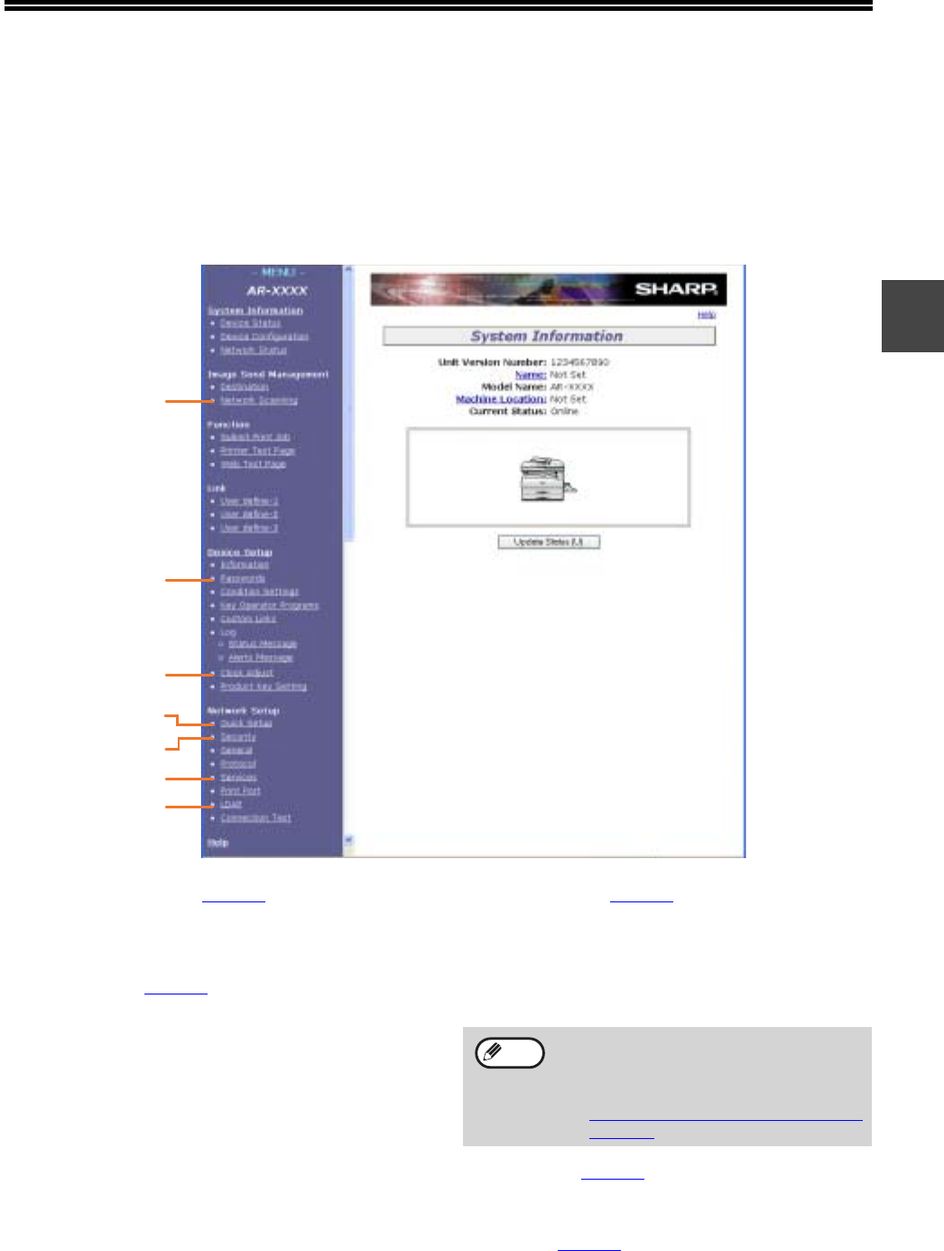 In addition to the menu that appear in the user Web page, the Web page for the administrator also shows menus