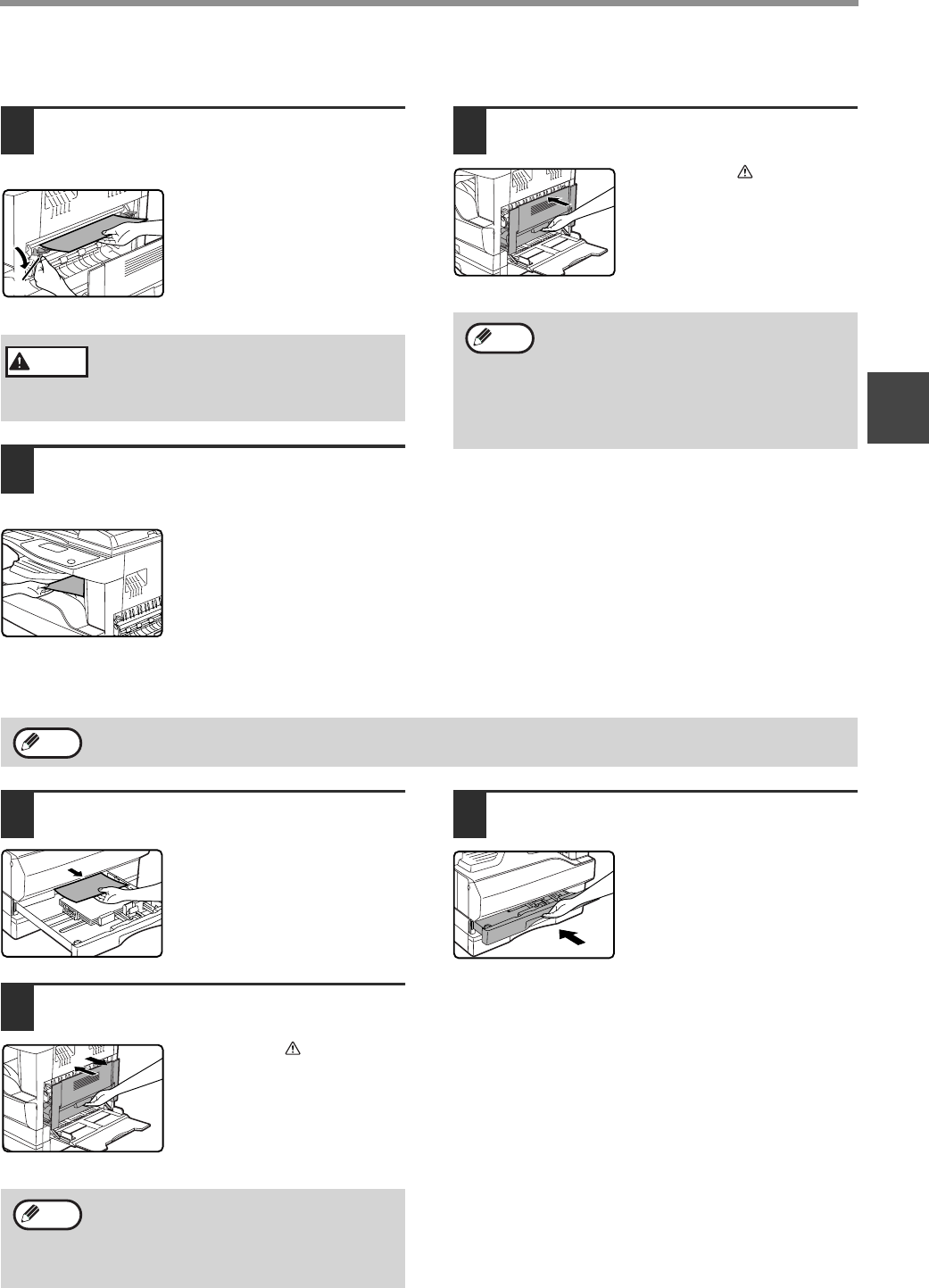 Make sure that there is no misfed paper in the tray before pulling it out. (Page 31)