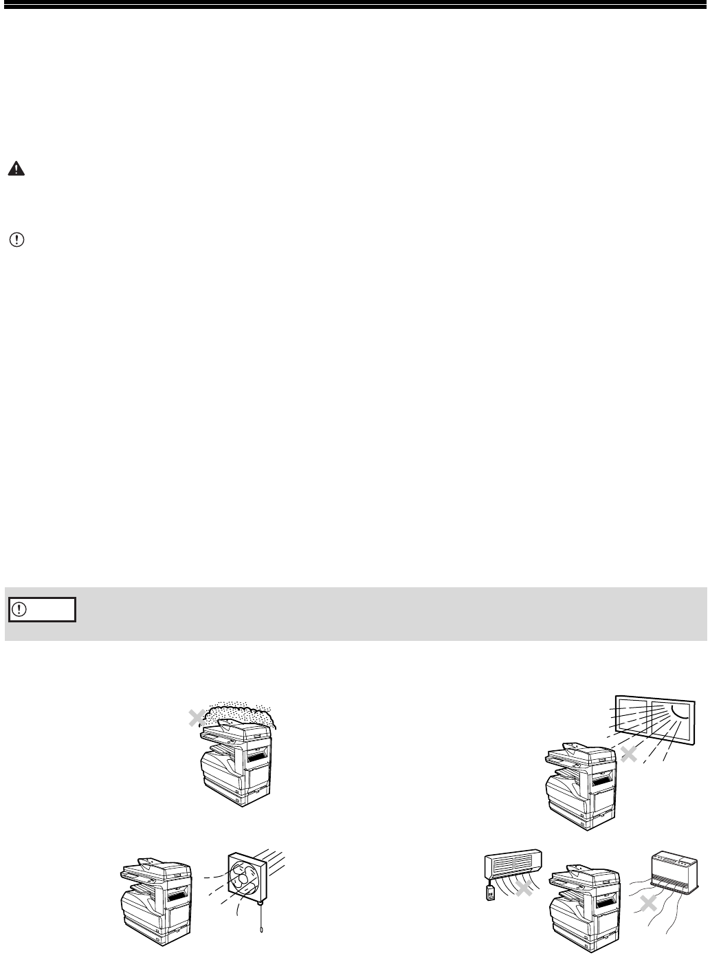• Do not cover the machine with a dust cover, cloth or plastic film while the power is on. Doing so may prevent heat