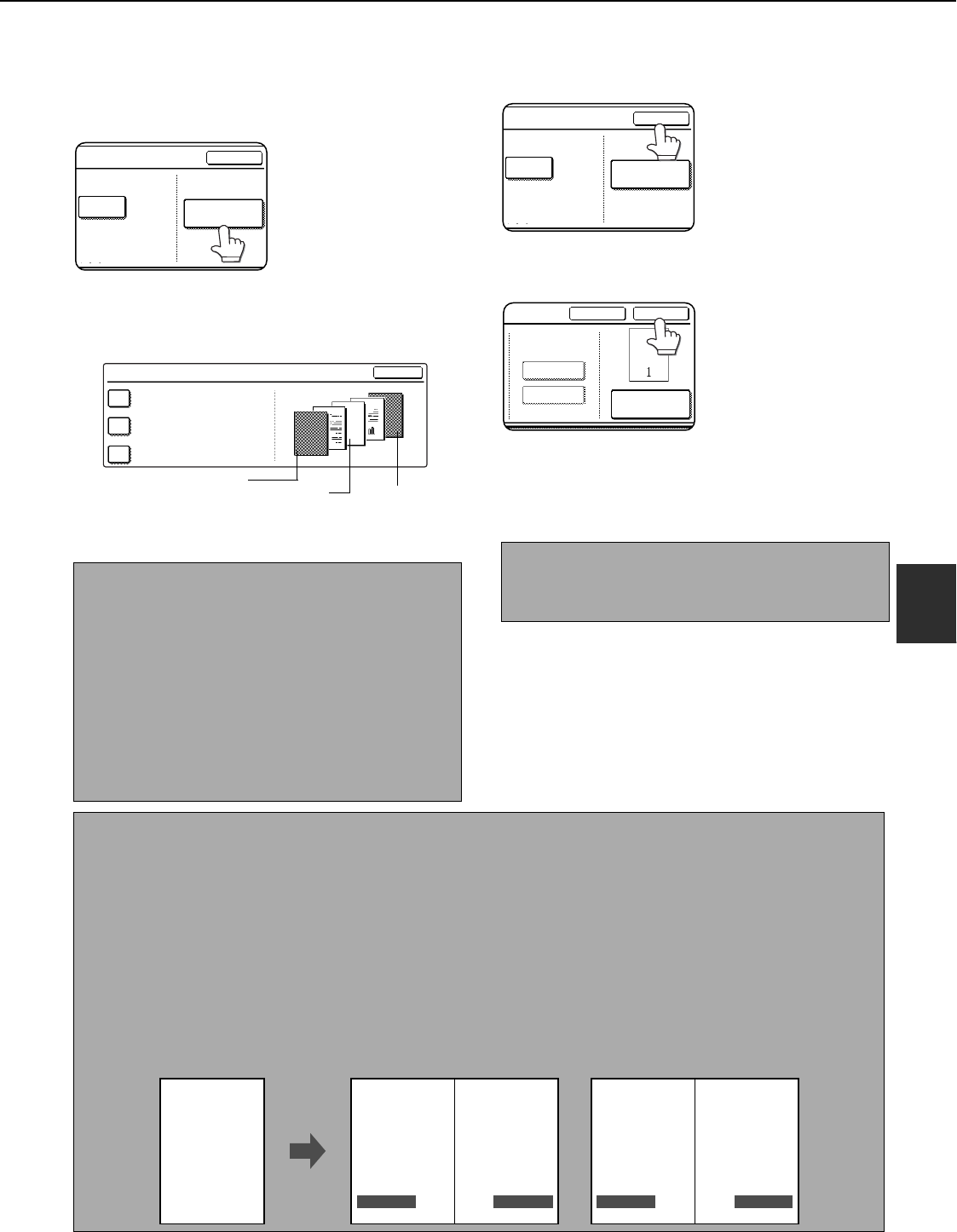Copying in group mode is not possible when page number printing is selected. The mode will automatically switch to sort mode.