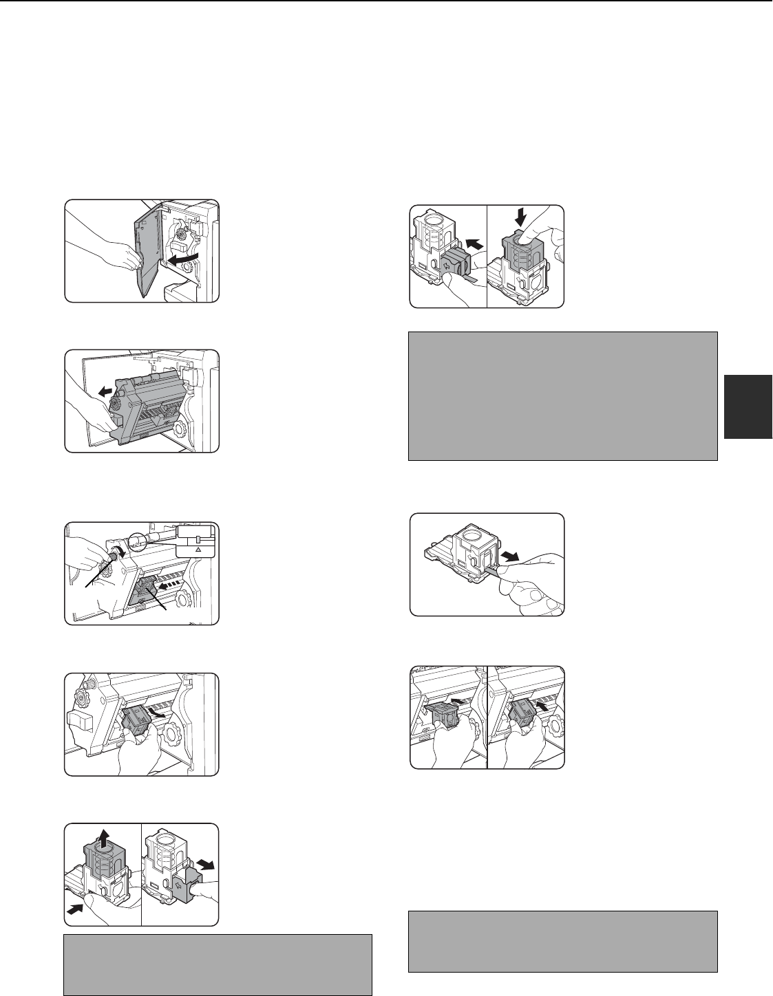 Follow the procedure below to replace the staple cartridge or remove jammed staples.
