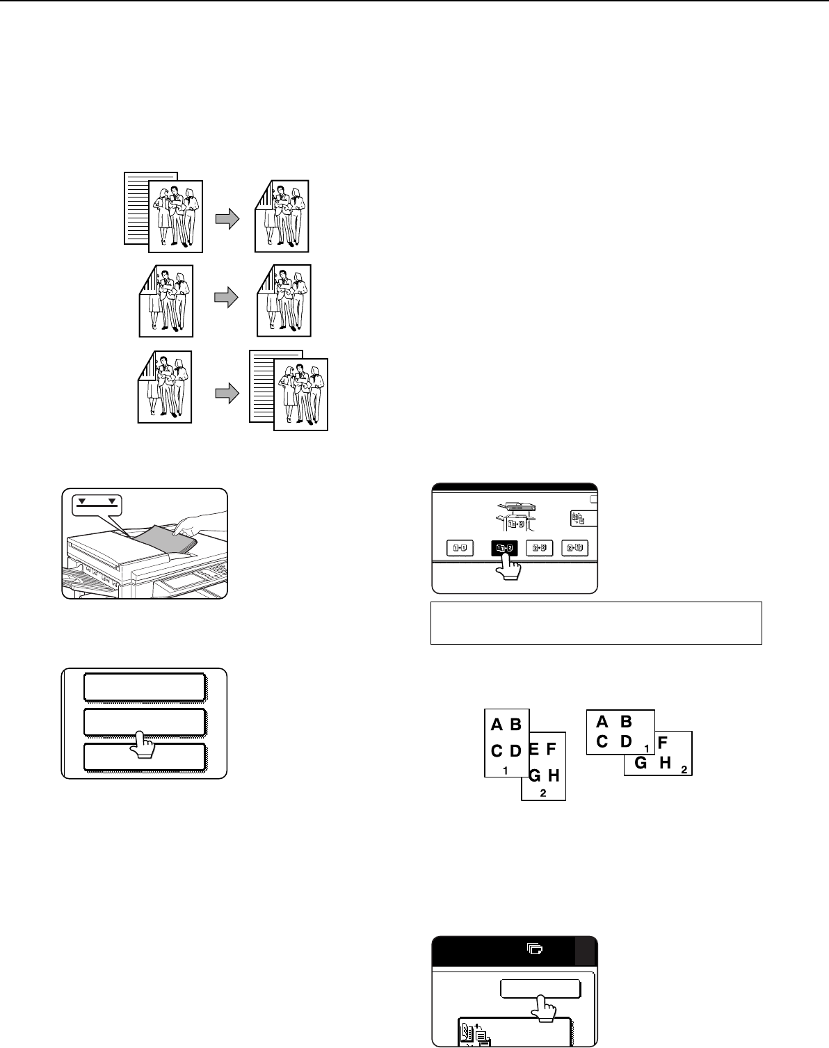 When the optional duplex module is installed, the following automatic two-sided copying can be performed. The