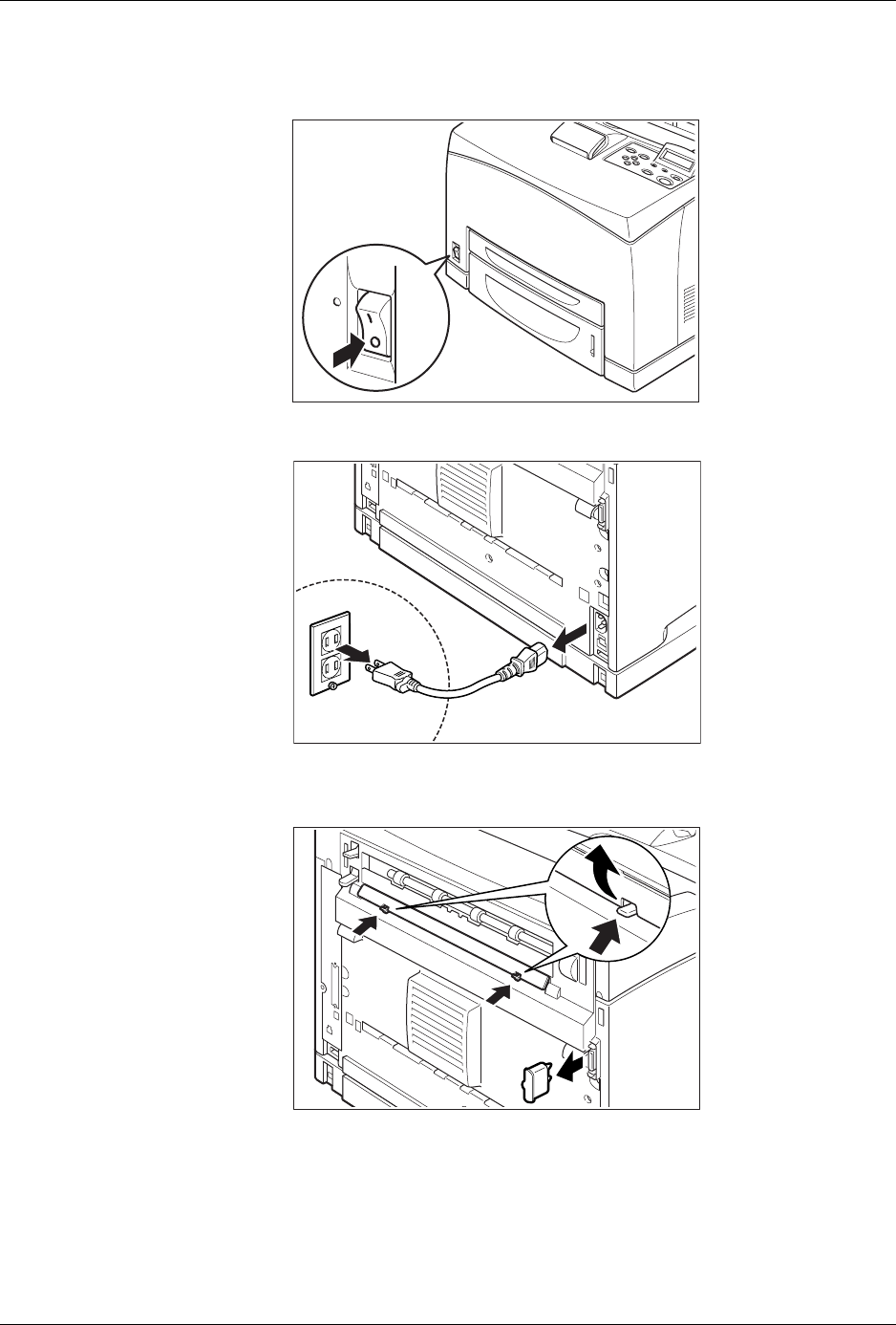 3. Remove the rear cover of the printer after pushing the two tabs as shown in the diagram.