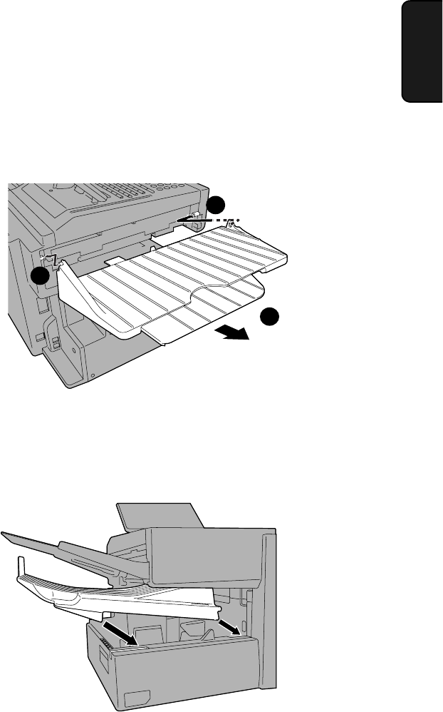 the ADF exit tray ➋. Pull out the tray extension ➌.