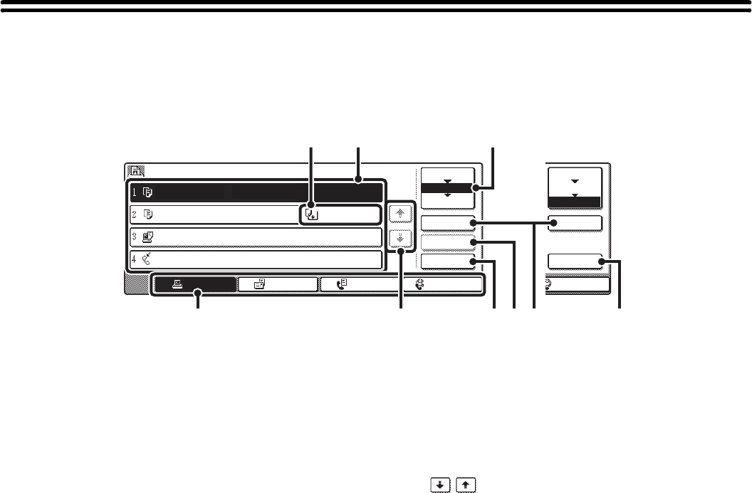 This screen appears when the [JOB STATUS] key on the operation panel is pressed.