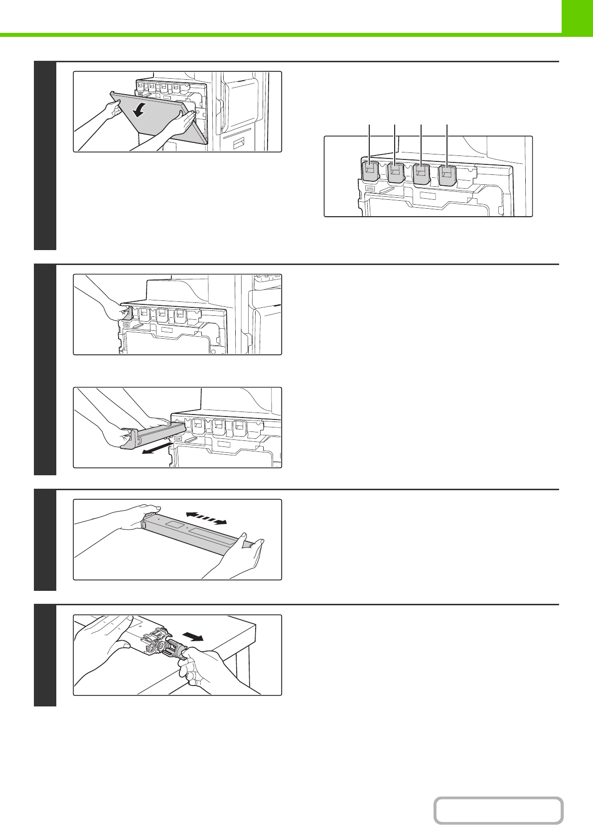 cartridge is pulled out abruptly, toner may spill out.
