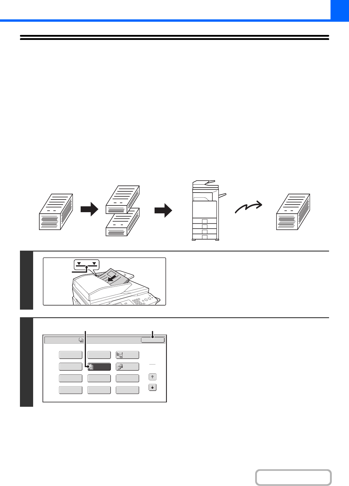 When copying a very large number of originals, this function allows you to divide the originals into sets and feed each