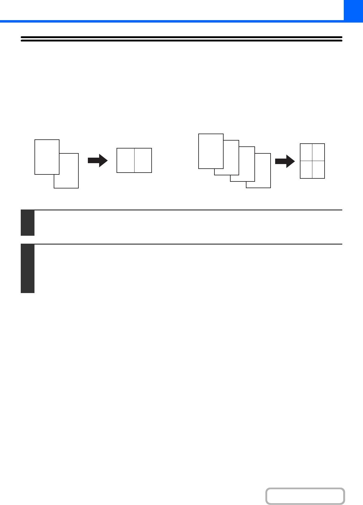 Multiple original pages can be copied onto a single sheet of paper in a uniform layout. Select 2in1 to copy two original