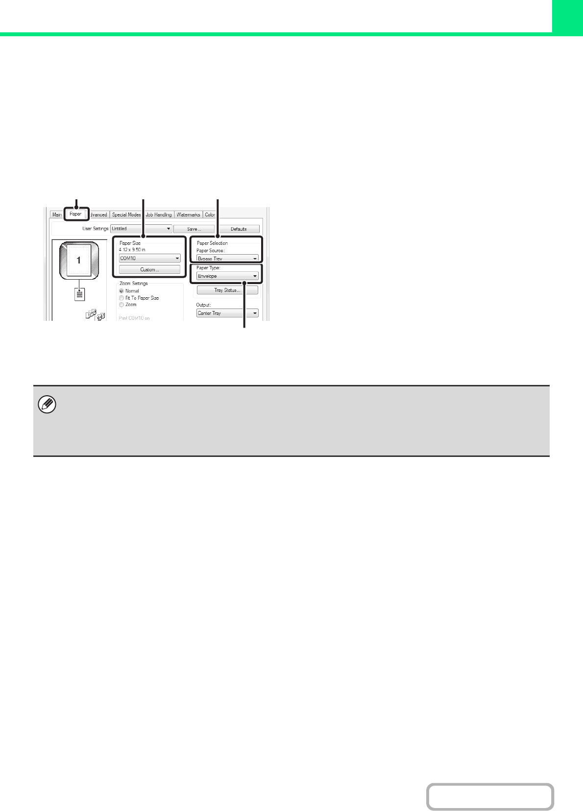 (2) Select the envelope size from the "Paper