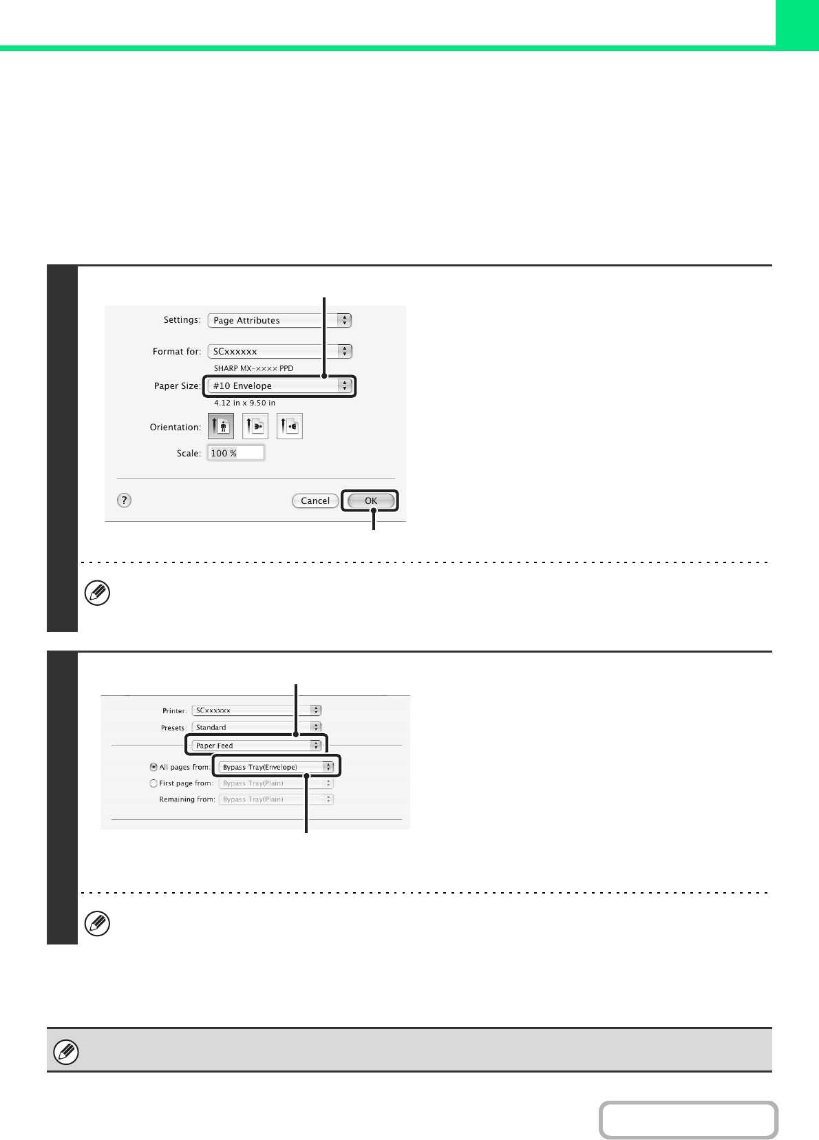 • In Mac OS 9, select [Bypass Tray(Envelope)] from