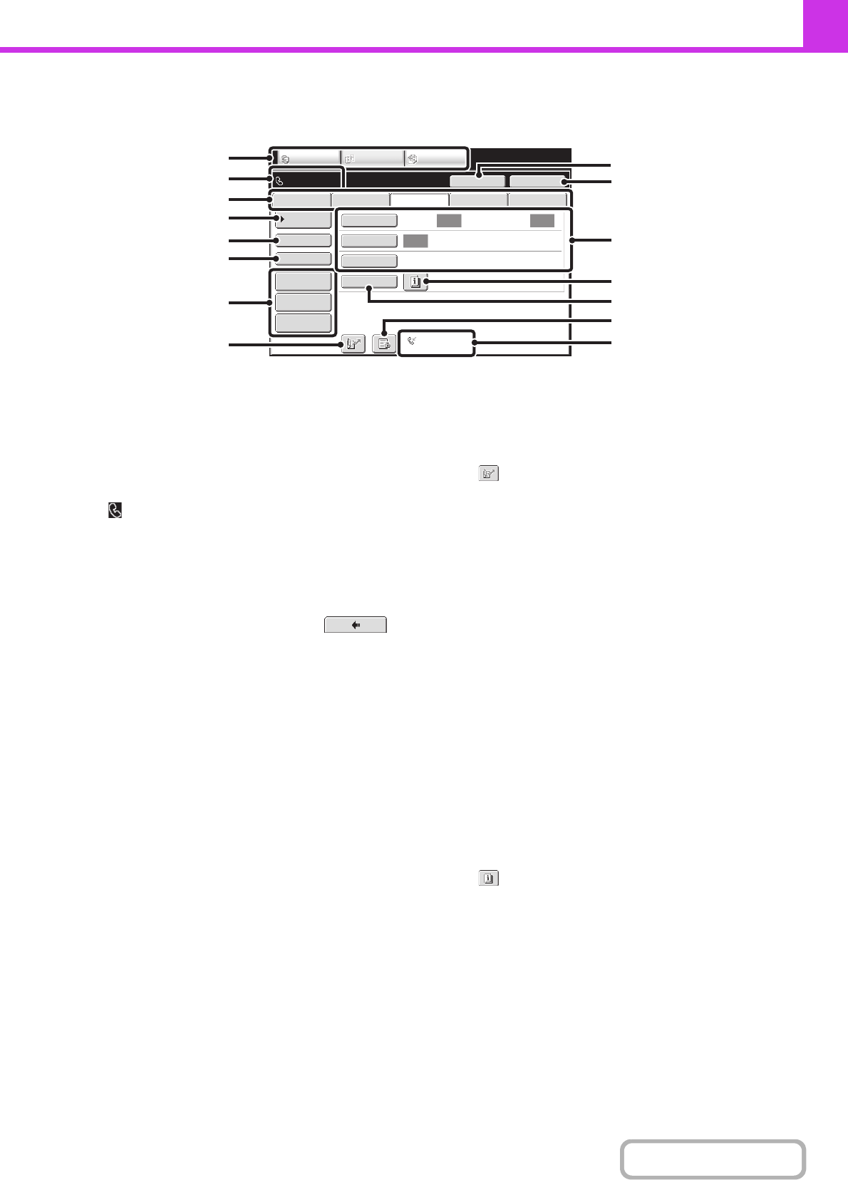 This screen is used to select settings and operations in fax mode.