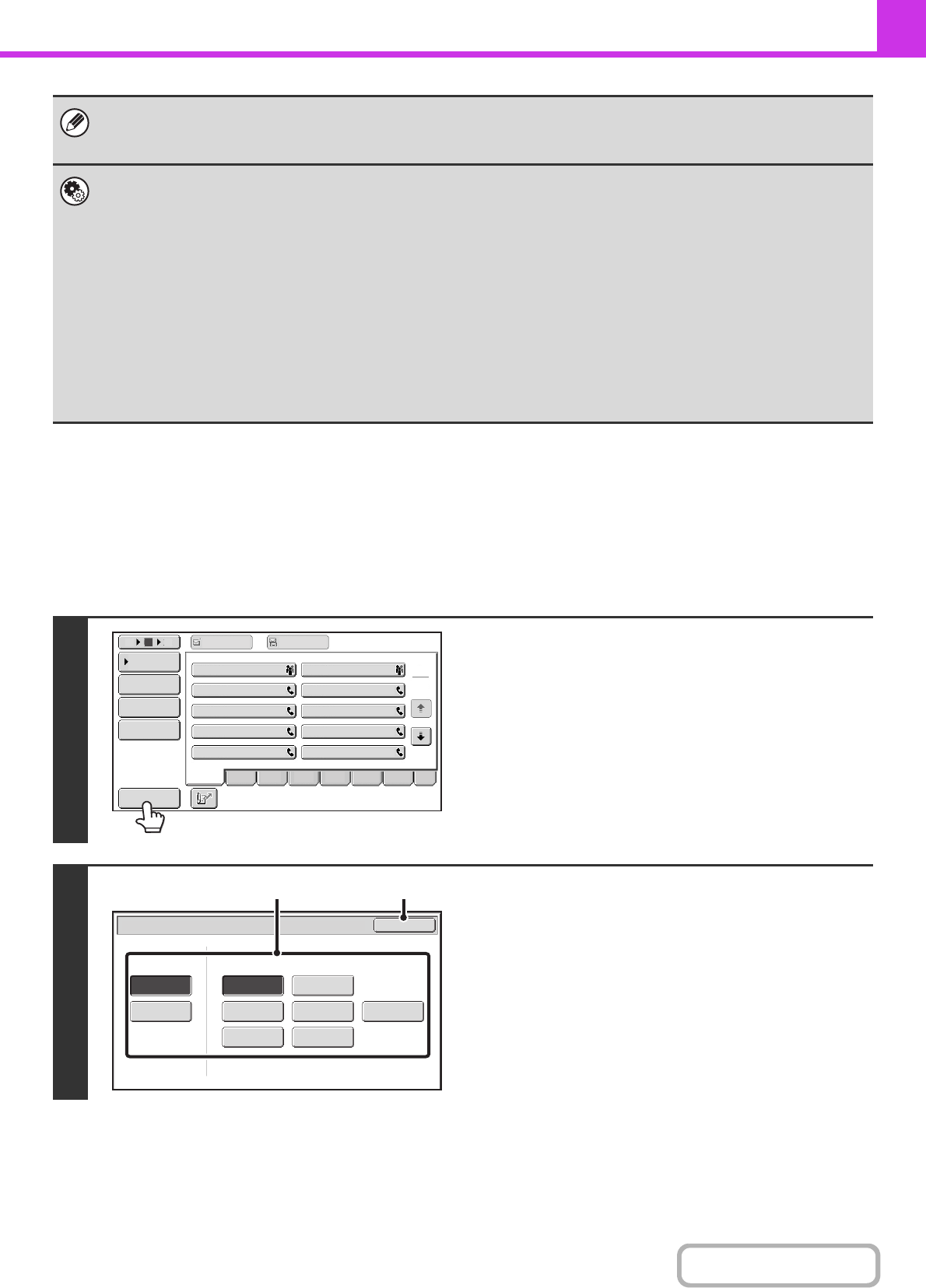 - Address type (all, group, E-mail, FTP/Desktop, Network Folder, Internet fax, fax)