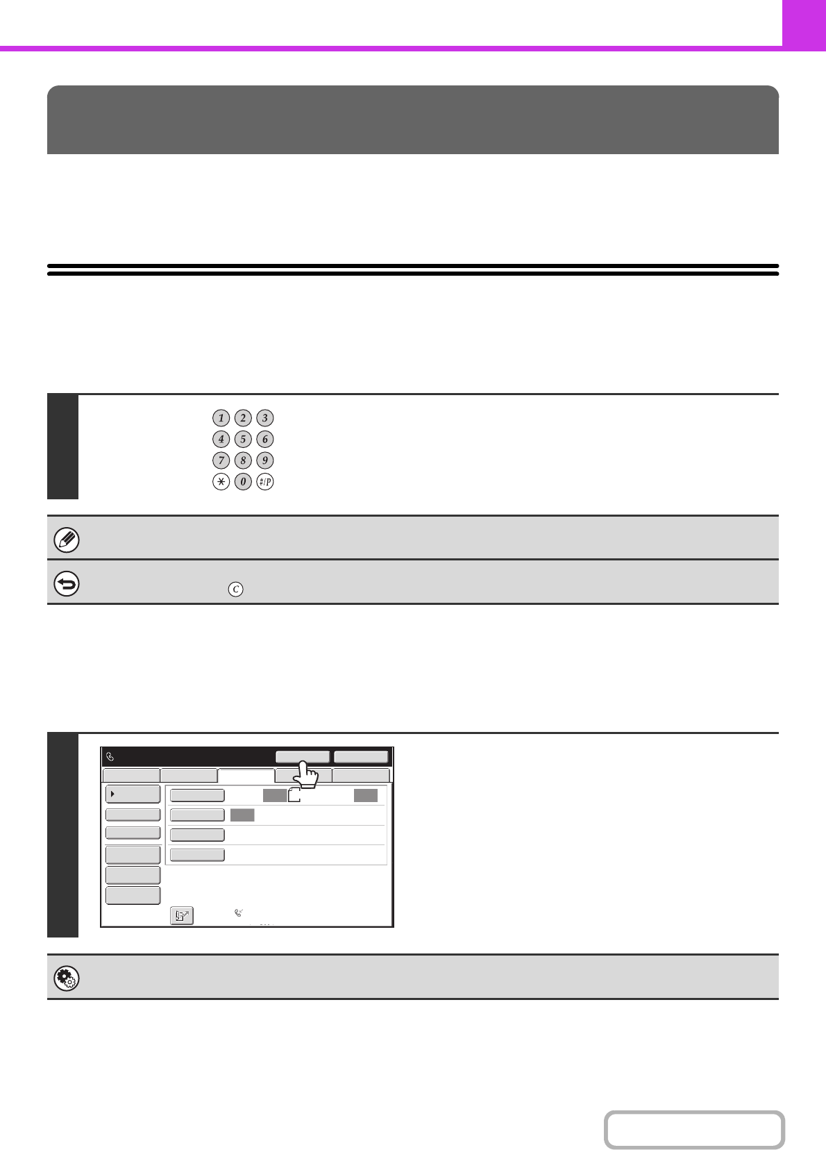 This section explains how to enter destination fax numbers.