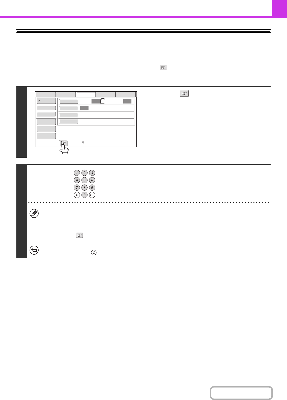 • If you do not know the search number, print the one-touch address list using "Sending Address List" in the system