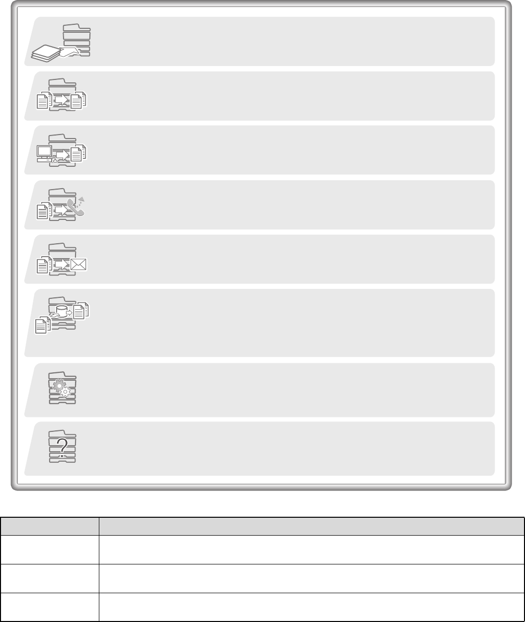 This manual provides easy-to-understand explanations of all the functions of the machine in a single