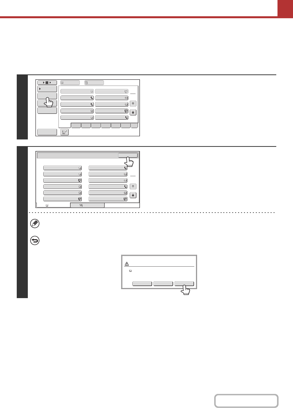 Touch the one-touch key of the destination that you wish to cancel. A message will appear to confirm the deletion.