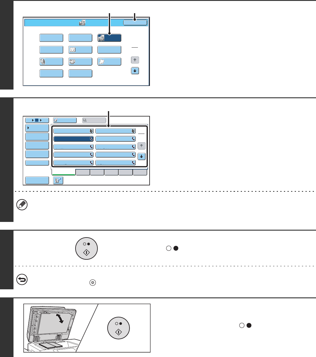 In addition to specification by one-touch key, a destination can also be specified using a search number. You can also