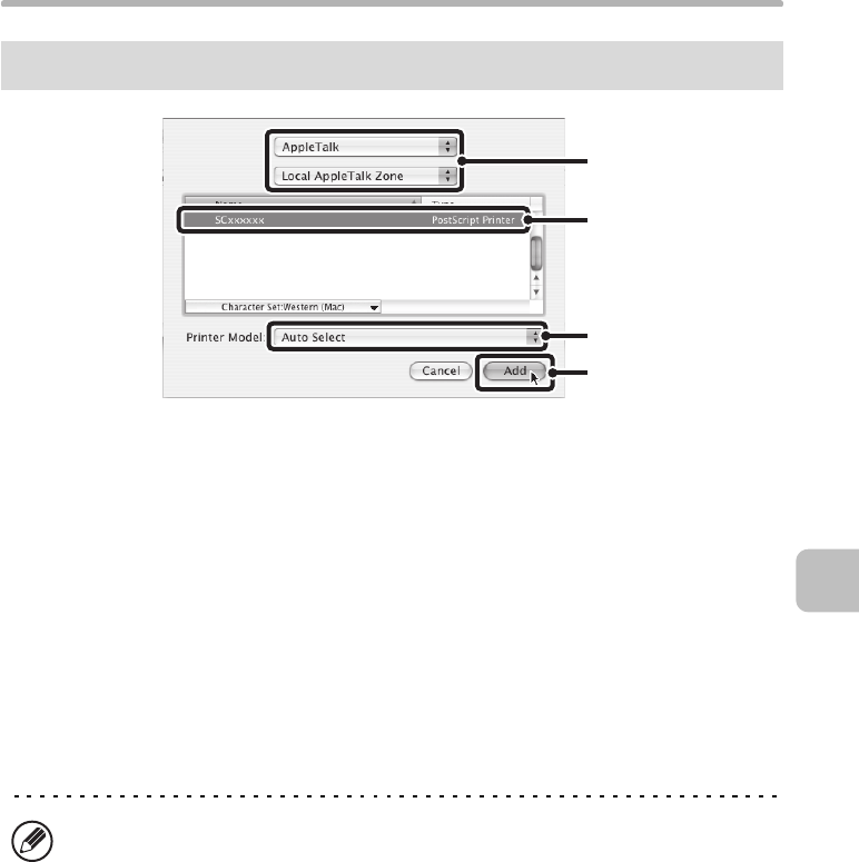 • If you are using Mac OS X v10.2.8, select [Sharp] and click the PPD file of