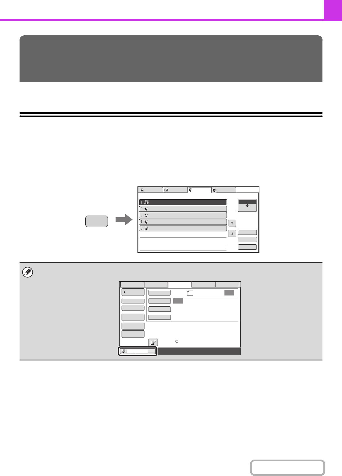 Example: Pressing the key in fax mode