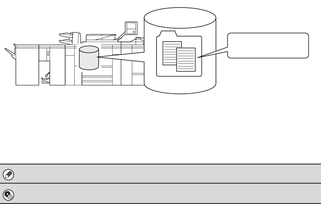 • Files saved using "Quick File" are assigned the "Sharing" property. "Sharing" files can be retrieved and printed or