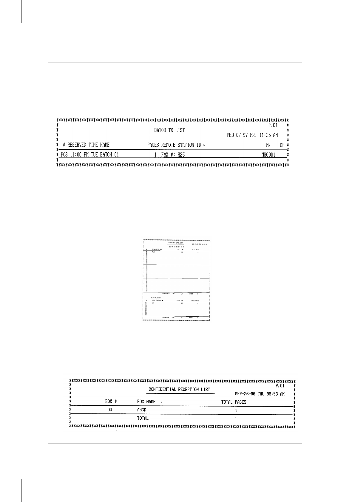 This list shows total transmission time and pages transmitted (including polling time