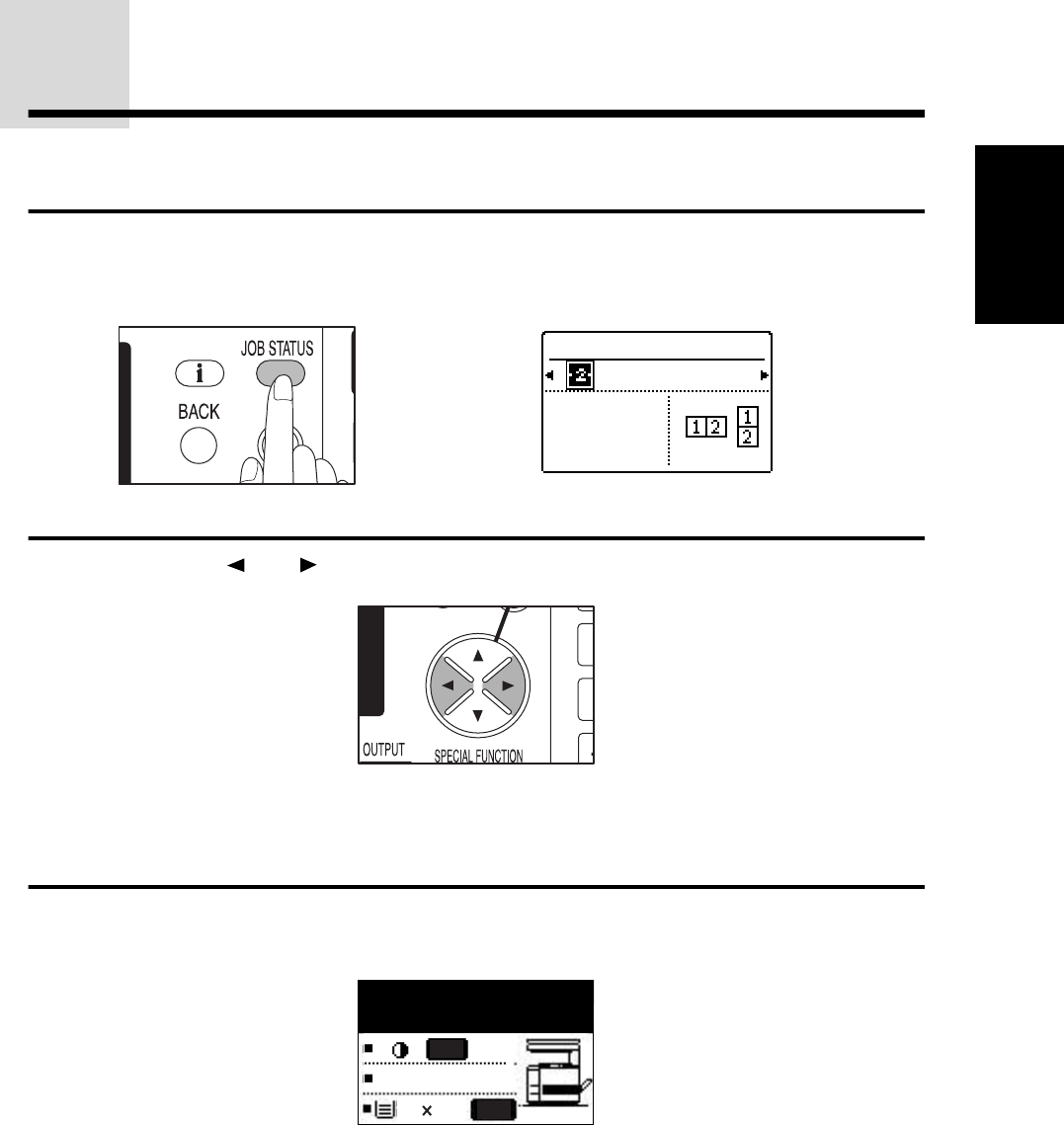 special functions can be displayed. Exposure, paper size, and copy ratio settings which