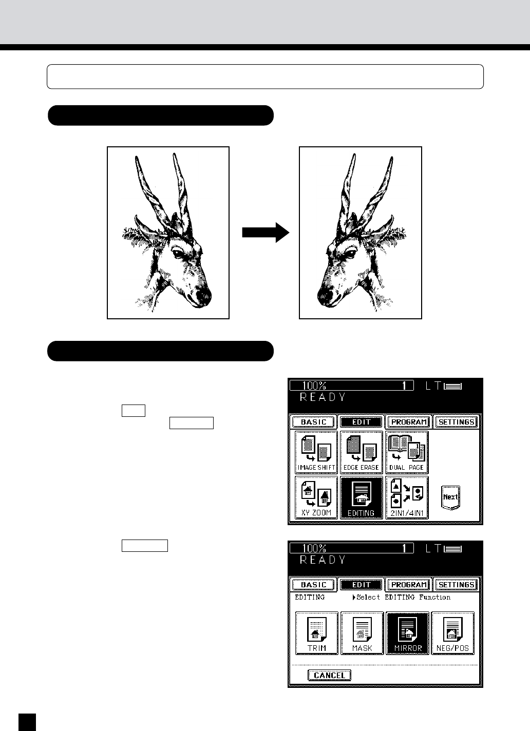Press the MIRROR key.
