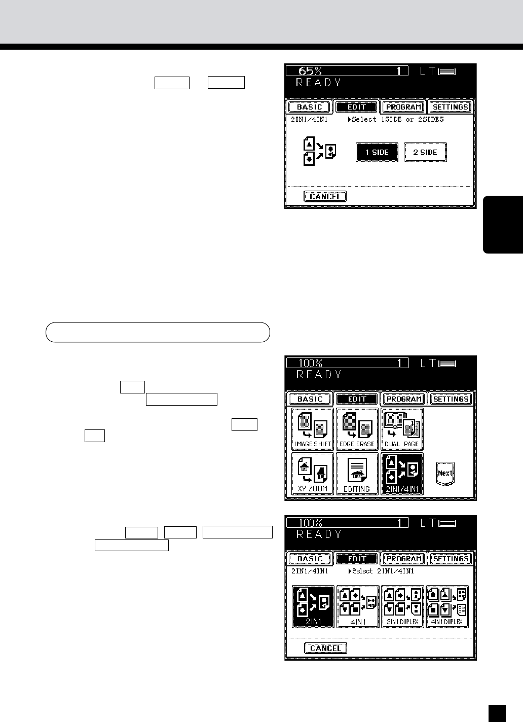 . Press the 2 IN 1 , 4 IN 1 , 2 IN 1 DUPLEX