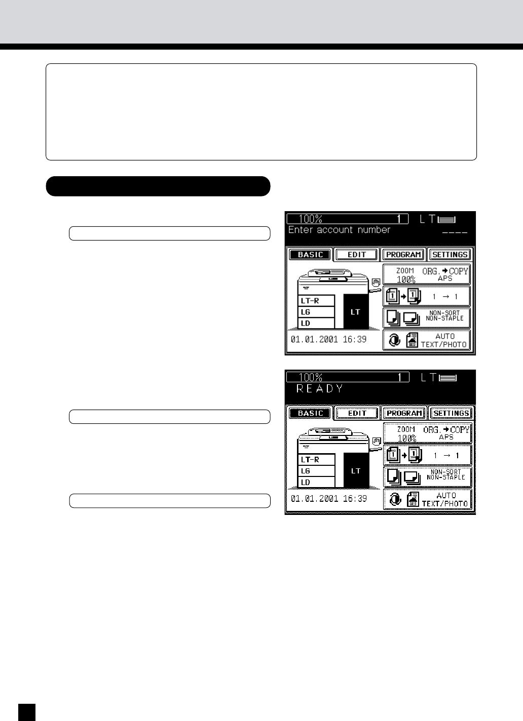 If the copier is set up so that account numbers can be used, you can make copies only after