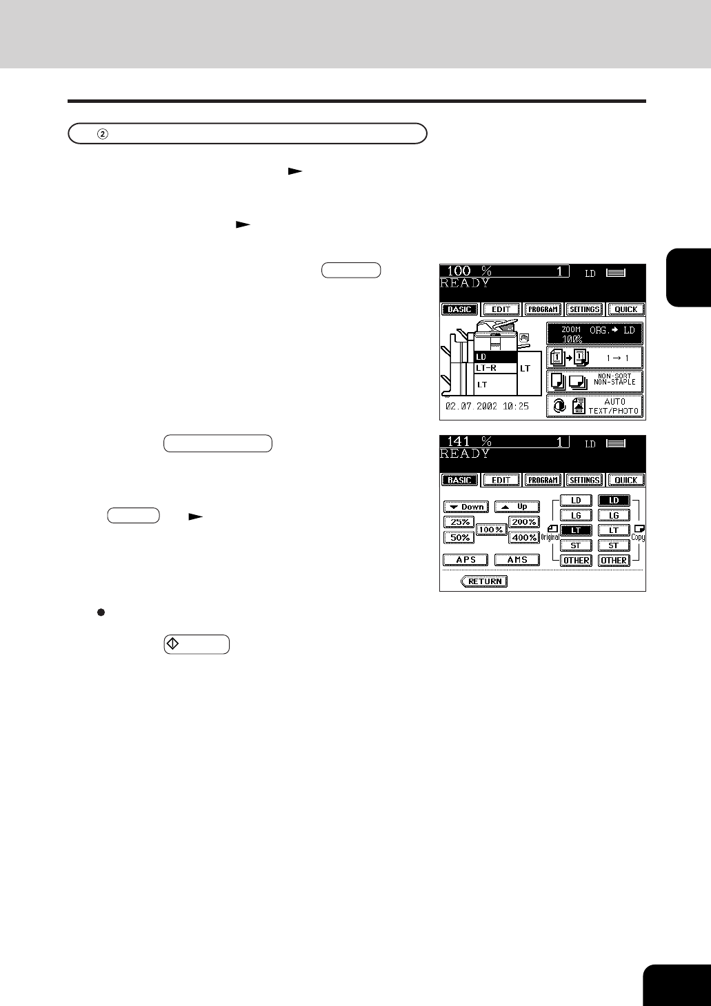 Press the ORIGINAL SIZE key of the same size as