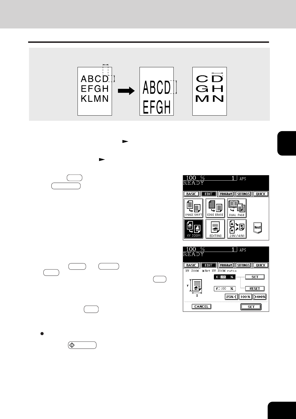 reproduction ratio for X and press the upper SET key.