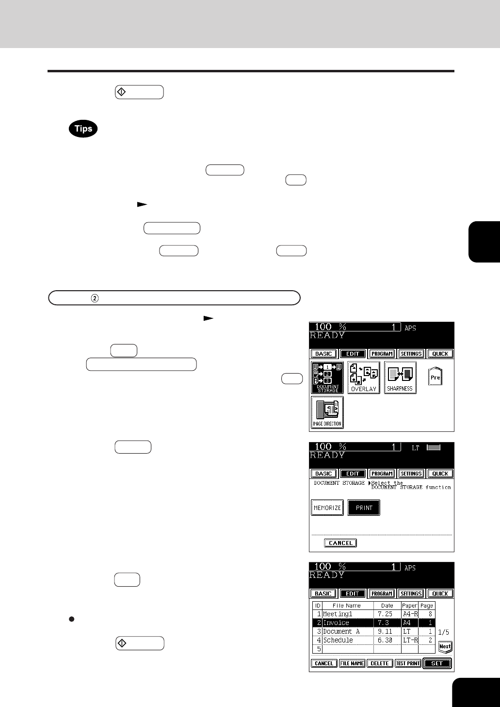 the DOCUMENT STORAGE key.