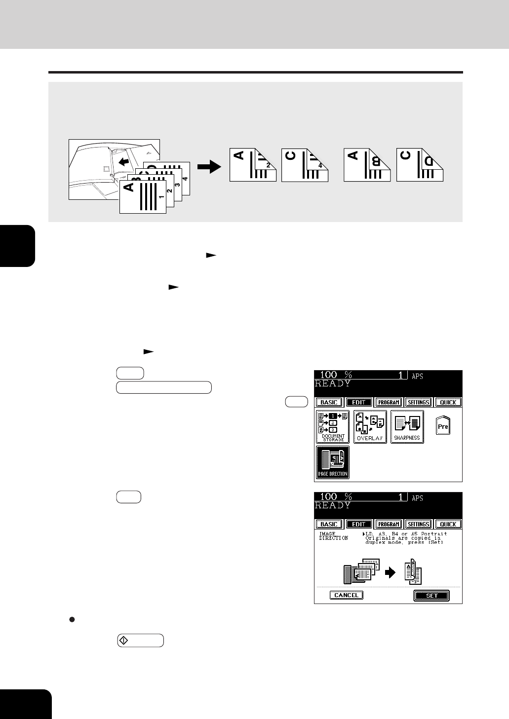 Copies, 2-Sided Originals to 1-Sided Copies, this function allows you to adjust the direction for