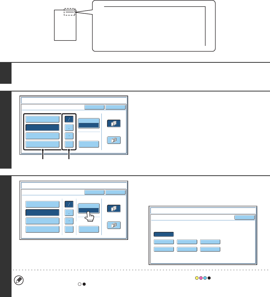 The date can be printed on copies. The position of the date, color, format, and page (first page only or all pages) can be