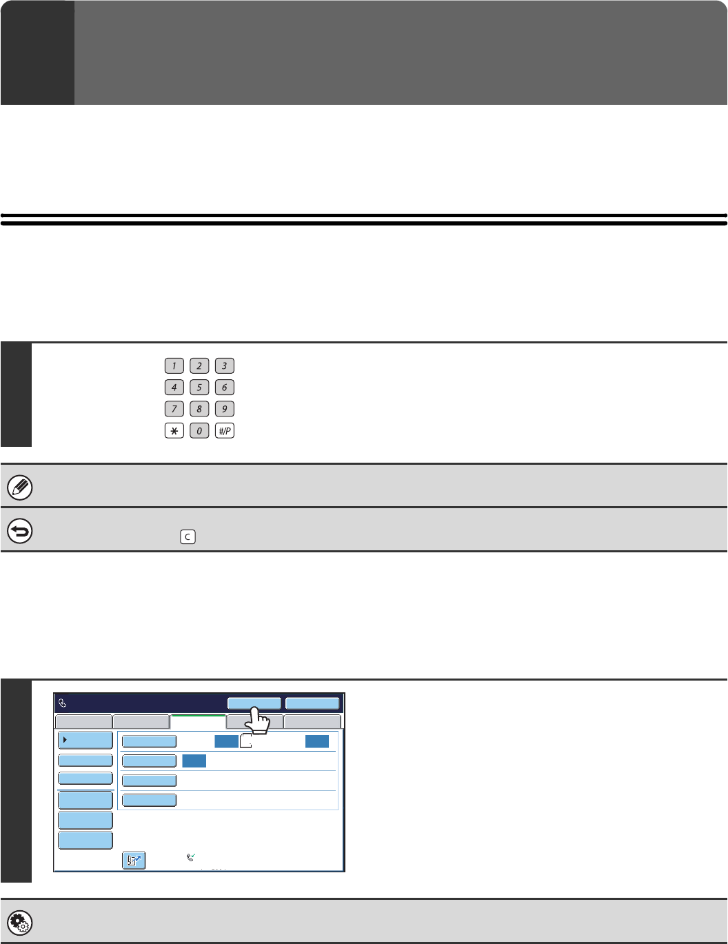 Destination fax numbers can be entered using the numeric keys, or by retrieving a previously stored fax number using