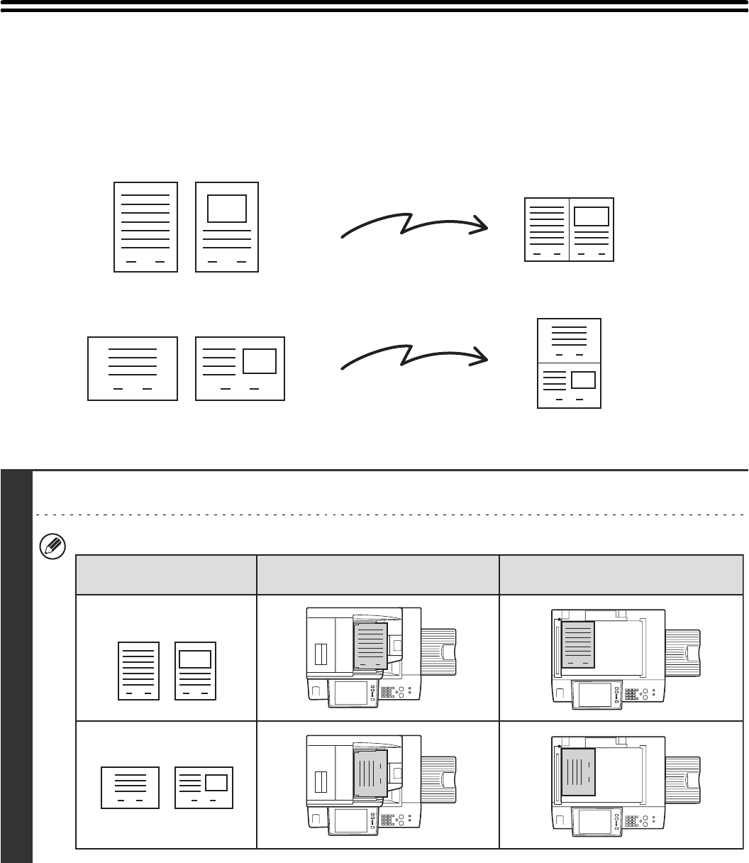 Two original pages can be reduced and sent as a single page. This function is convenient when you have a large