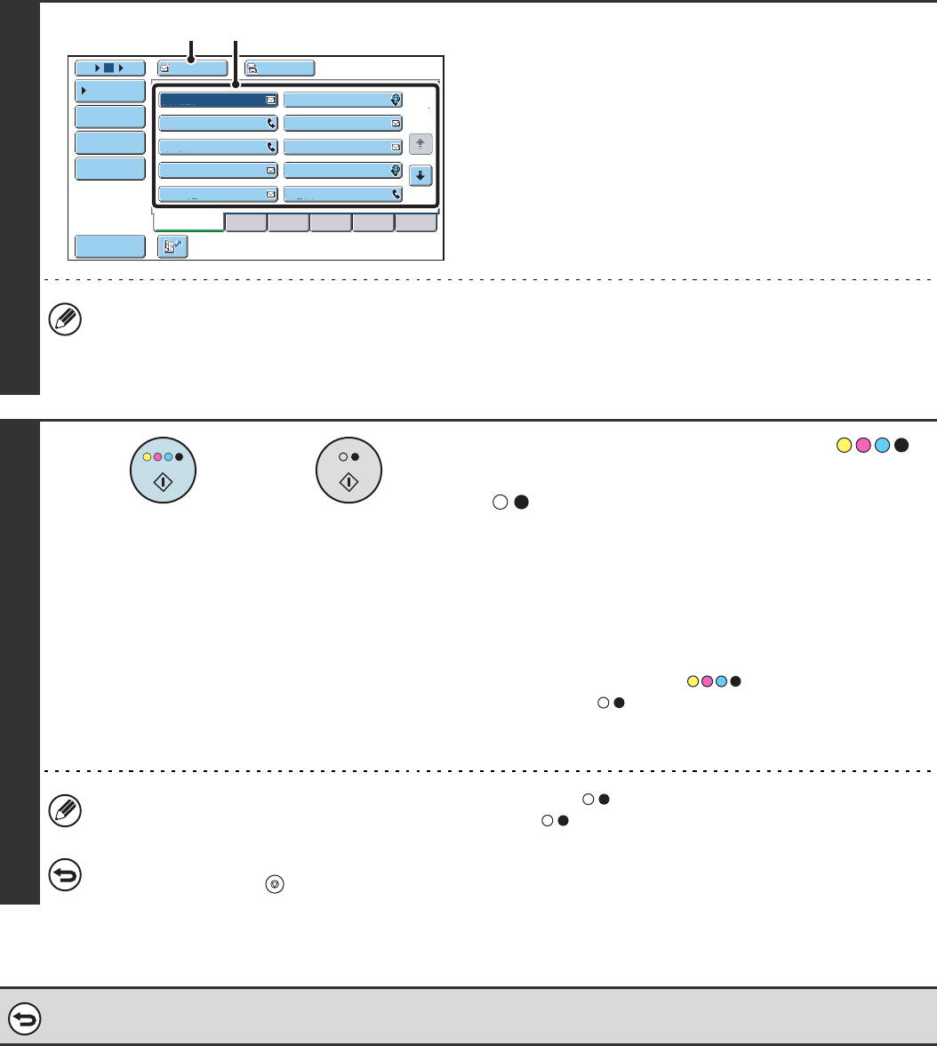 • In addition to specification by a one-touch key, a destination can also be specified by a search number. You can