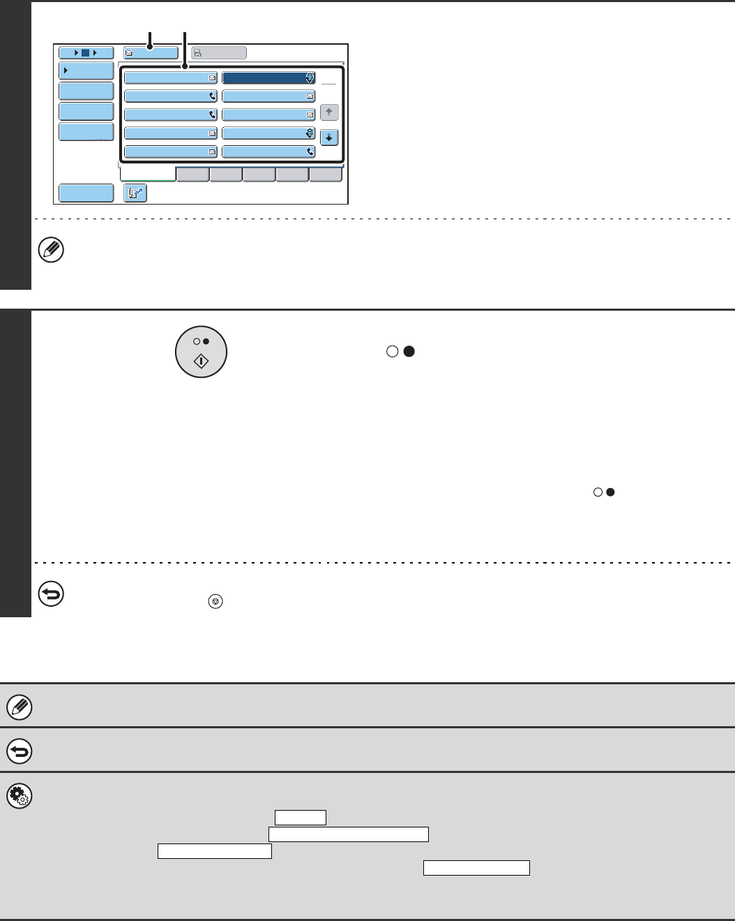 In addition to specification by a one-touch key, a destination can also be specified by a search number. You can also