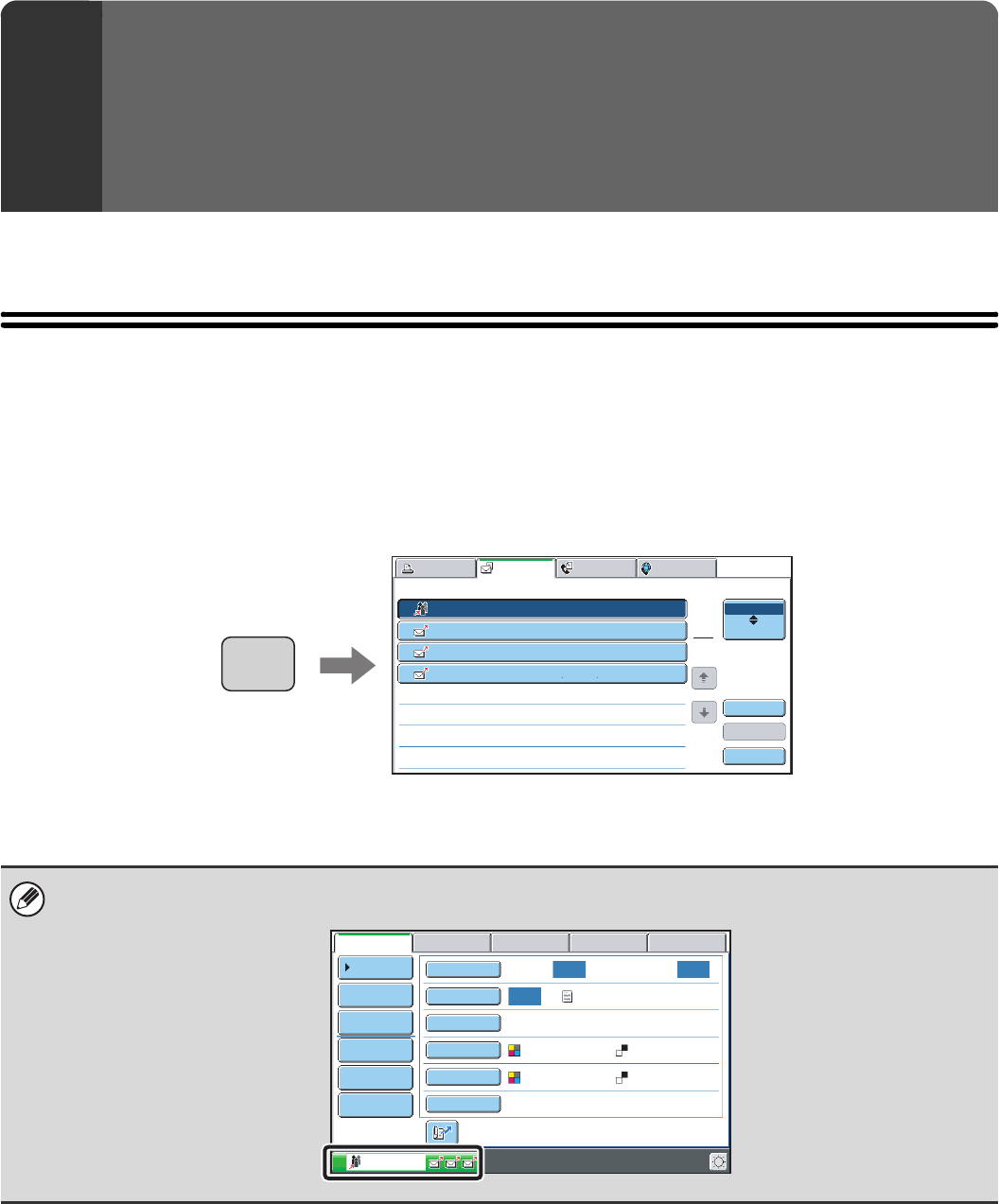 screen shows the status of jobs by mode. When the [JOB STATUS] key is pressed, the job status screen of the mode