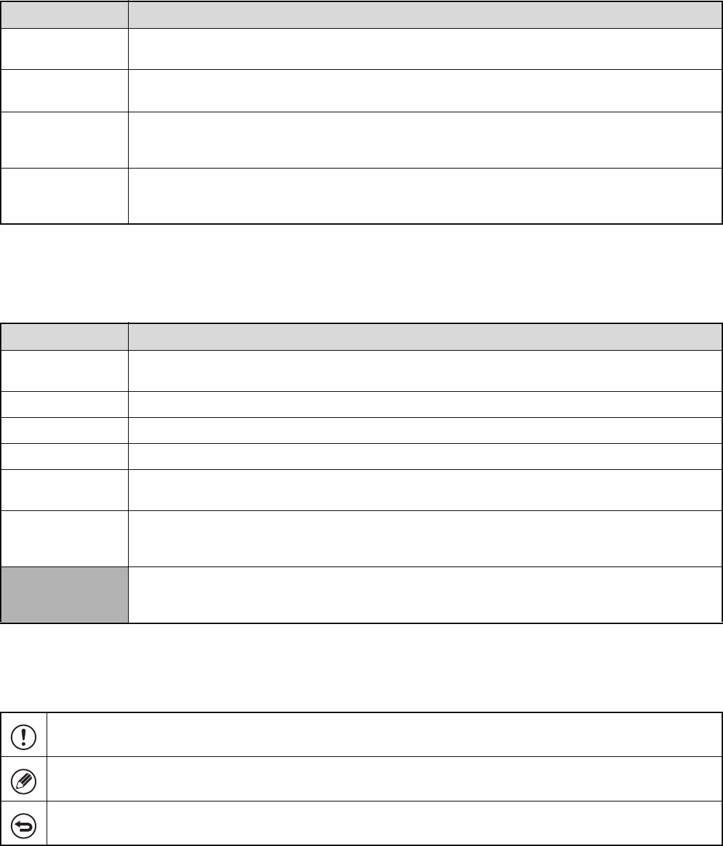 The icons in the manuals indicate the following types of information: